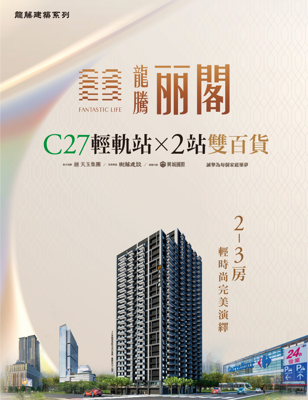 輕軌到站就到家的家,出門就擁抱一座精彩的城市! 不開車更隨心所欲:夢時代、駁二、美術館、義大、亞灣水岸,還有鄰居般的百貨聚落,搭配黃線雙預定站,行動力double!