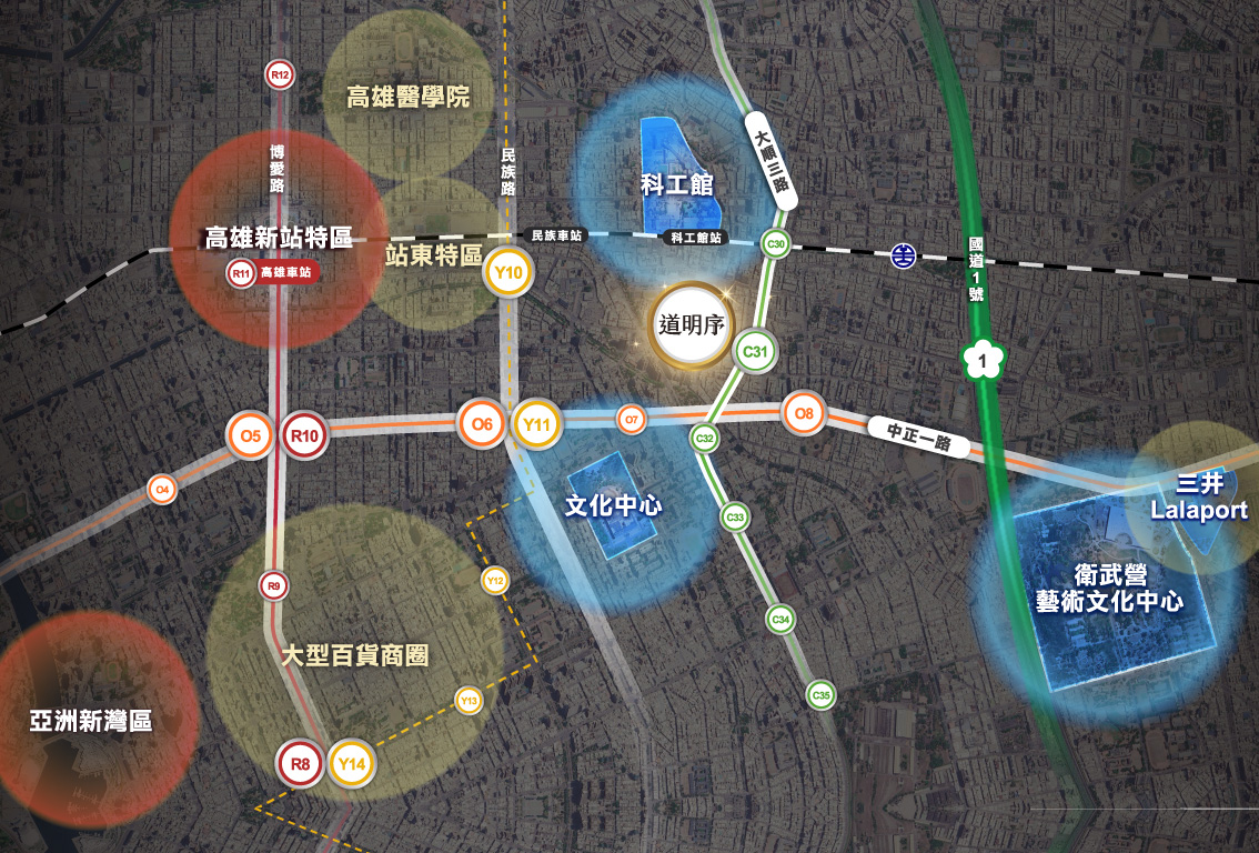 本案具備四通八達的交通路網,出門步行即可抵達輕軌C31站與捷運O8站,輕鬆掌握高雄城市脈動。開車族更能藉由建國路順利接上國道1號,南來北往皆極具效率。此外,建案更鄰近未來三鐵共構的高雄新火車站特區,完善的大眾運輸系統與便捷的聯外道路,為您大幅縮短通勤時間,讓城市移動更加優雅從容。